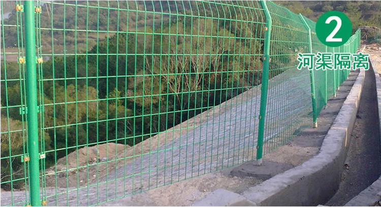 双边丝护栏网采用盘条作为原材料,双边丝护栏网经由镀锌、涂前底漆和高附着力粉末喷涂三层保护的焊接式网片,具有日久抗腐蚀、抗紫外线的特性。在这种护栏网的表面处理为镀锌和喷涂,也可以任选一种,顶端盖有塑料盖或防雨帽。根据环境和安装方式不同,可选用预埋50cm、加底座等方式。将双边丝护栏网的网片和立柱靠螺丝和各类特殊的塑料或铁的卡子连接。所有的螺丝均为自动防盗的。所用配件也可以按照客户的具体要求来设计。